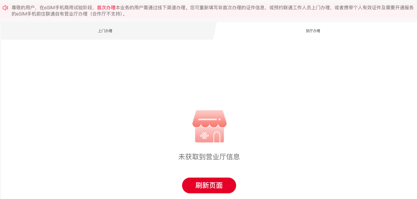 值得一提的是,页面也显现,在eSIM手机商用实验阶段,初次处理本事务的用户需经过线下途径处理。用户可从头填写非初次处理的证件信息,或预定联通工作人员上门处理,或许带着个人有用证件及需求注册服务的eSIM手机前往联通自有营业厅处理(协作厅不支持)。