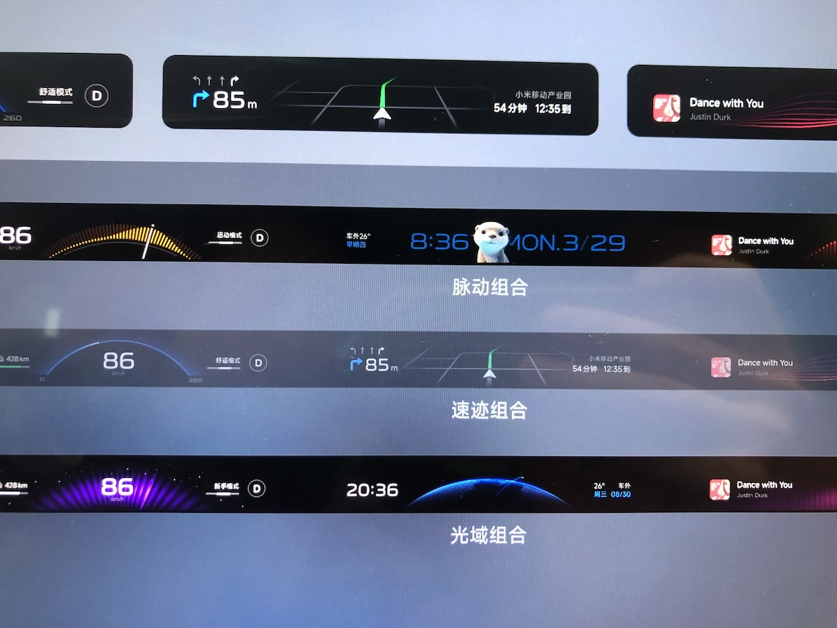 在夏天,绝大多数墨镜不会影响小米天边屏的显现作用,小米YU7将会在交给时随车赠送一副非偏振光墨镜。别的,显现的卡片内容也能够定制,三个屏的显现也能够依据需求进行拖动替换。