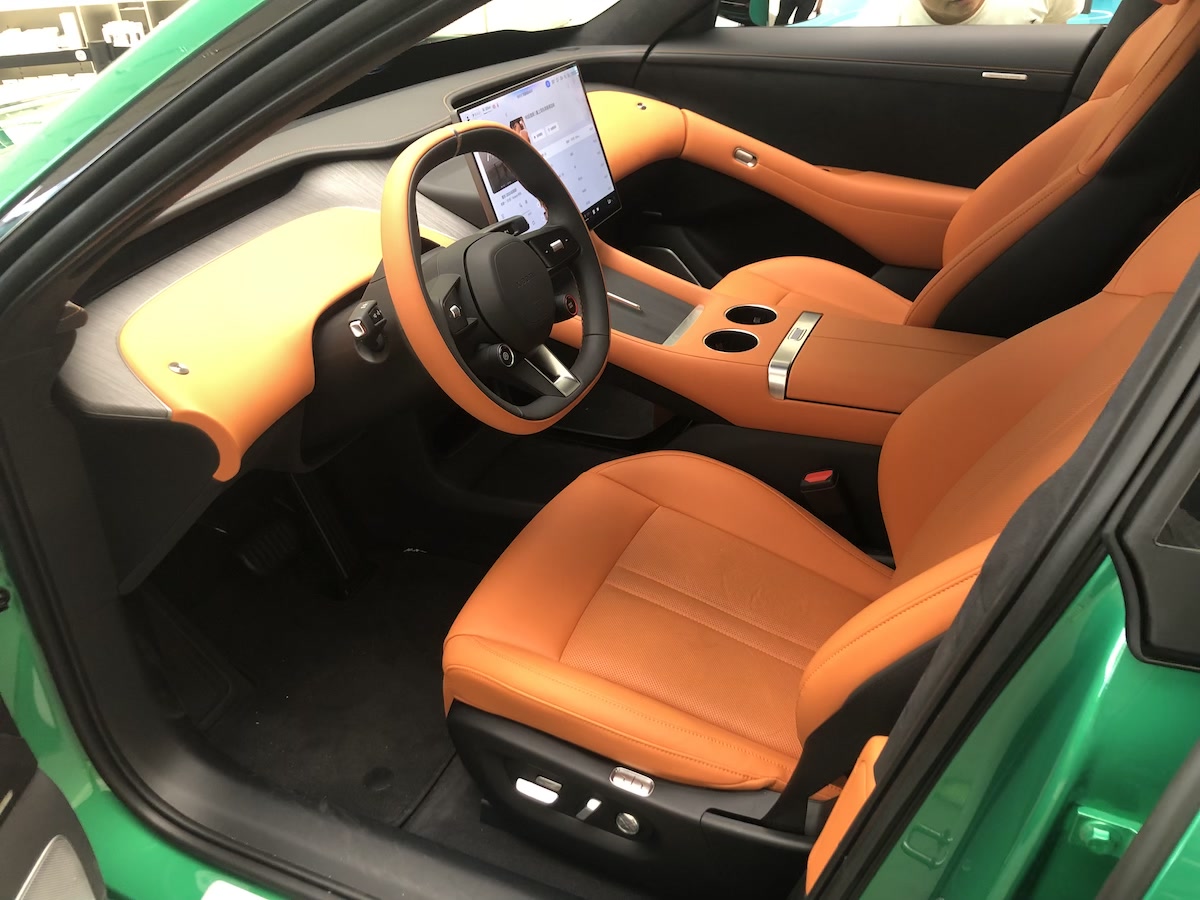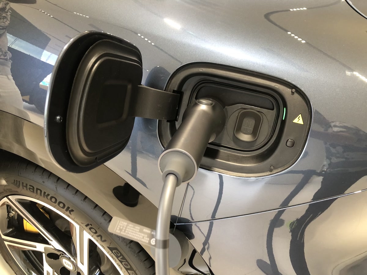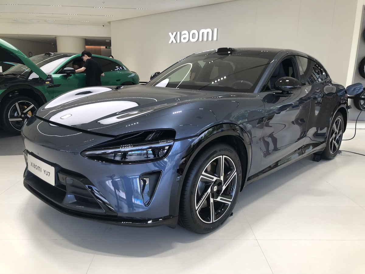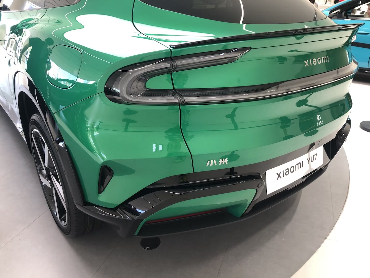 YU7 用了电动内翻式门把手,隐藏式规划,能下降风阻,接近主动内翻,气氛灯照明,关门主动闭合。侧边能够看到充电口,小米的车全系标配 800V 碳化硅高压渠道,这样也是它的一个优势。