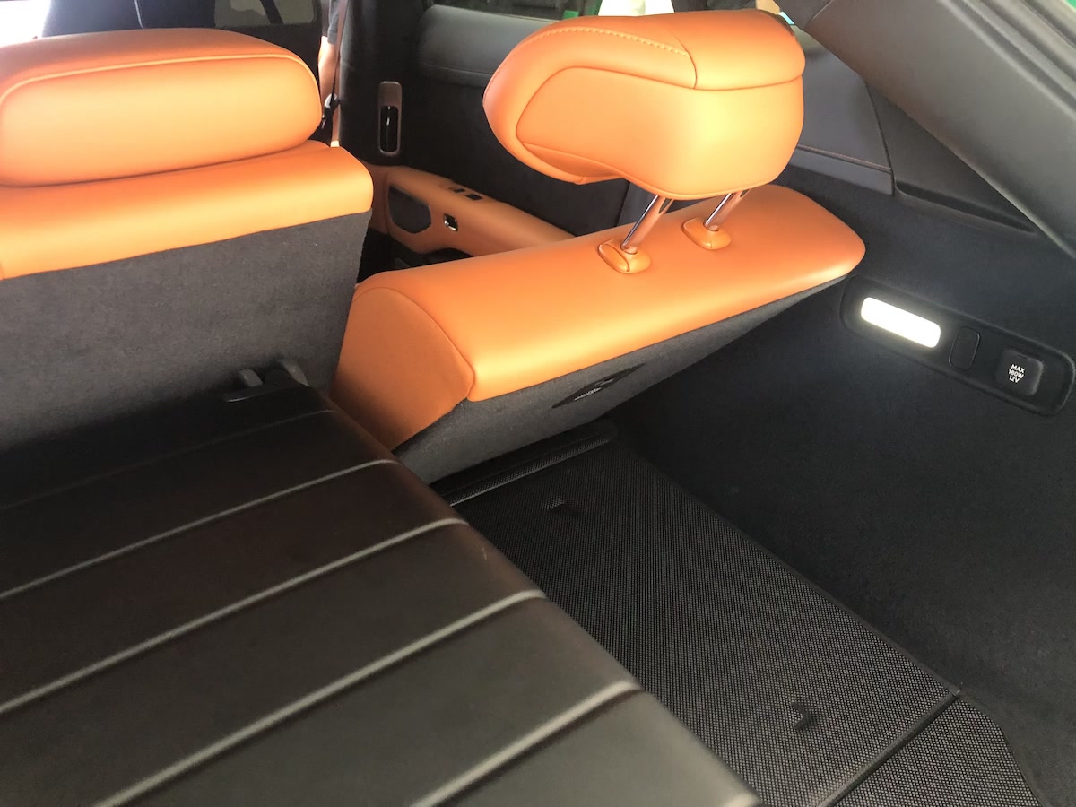 后排能够电动折叠放倒,但由于座椅和视点的联系,放平之后的水平线不是全平,会有一些歪斜,但假如你想当床的话,也根本没问题。