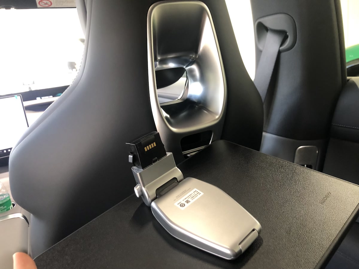 前方座椅的背部,设置了一个可插拔的电源接口,直接能够把小米平板接入。这个平板衔接的十分安定,没有摇晃的痕迹,应该也是朝着车规的方向做的,添加了稳定性。