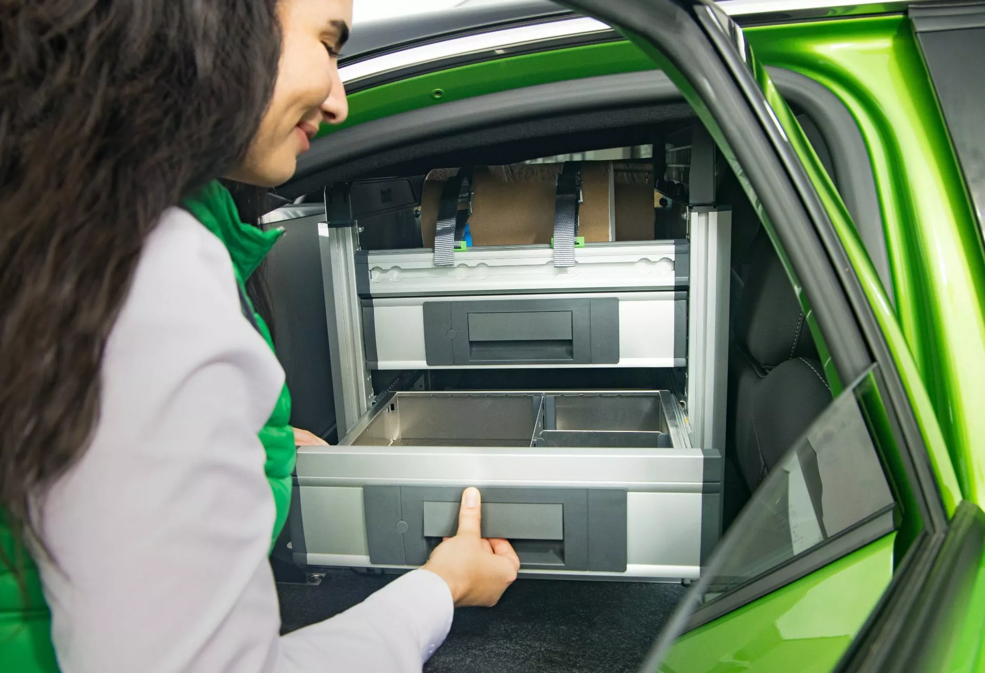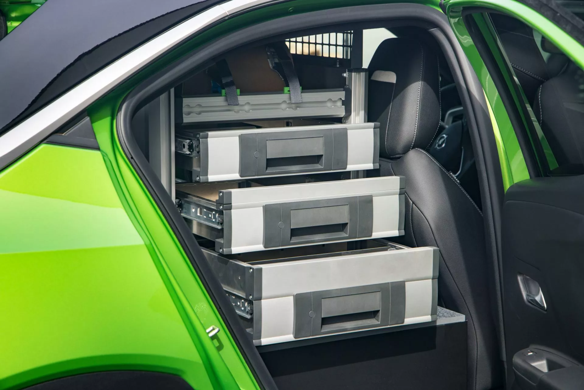 当您想到 LCV 时,欧宝Mokka Electric 并不是第一个想到的车辆,由于它更重视风格而不是有用性。虽然如此,这家轿车制造商仍是展现了一款专为专业人士规划的小型 SUV 的新版别,并将其描绘为“全电动服务车”。从外观上看,该模型与任何其他 Mokka 相同。当你打开门时,你会发现机舱内只要两个座位,后排长椅被多组抽屉替代。“智能货架体系”称为 bott vario3,来自 Bott GmbH & Co Kg 公司,该公司为卡车和作业空间供给类似的存储解决方案。